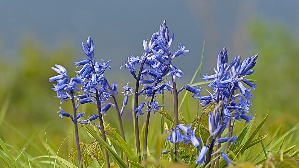 Hyacintjes in allerlei afmetingen en bloemvorm mogen niet ontbreken. Zoals Scilla bifolia en S. siberica en meer van deze soorten, zoals de Scilla non-scripta die nu Hyacinthoides non-scripta heet.
