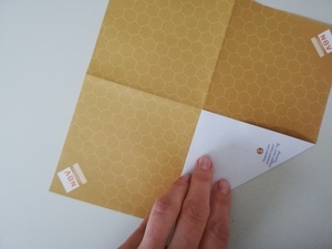 Het velletje papier heeft al de juiste maat. Je kunt direct beginnen met vouwen.