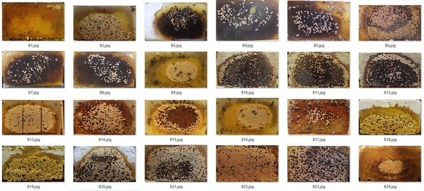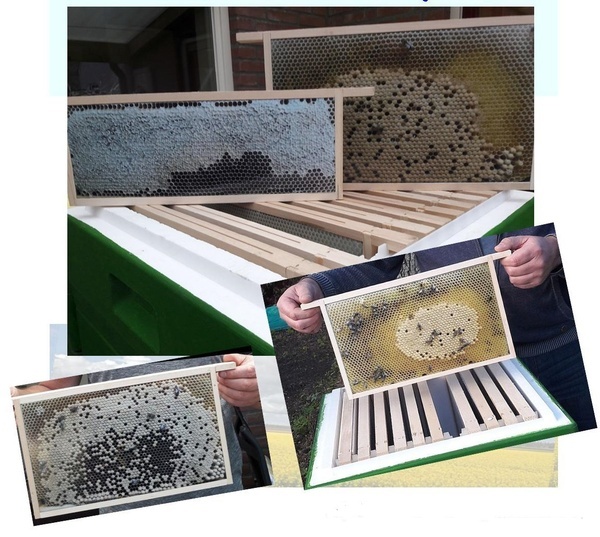 Albert Koopman fotografeerde een bijenvolk op de honingraten en vulde met de foto’s zijn ID-kast: de instructie- en demonstratiekast. Foto’s in broed- en honingkamerraampjes geven een complete impressie van het bijenvolk in allerlei stadia in het jaar. Allerlei situaties kunnen zo worden nagebootst t.b.v. cursus of demonstraties.